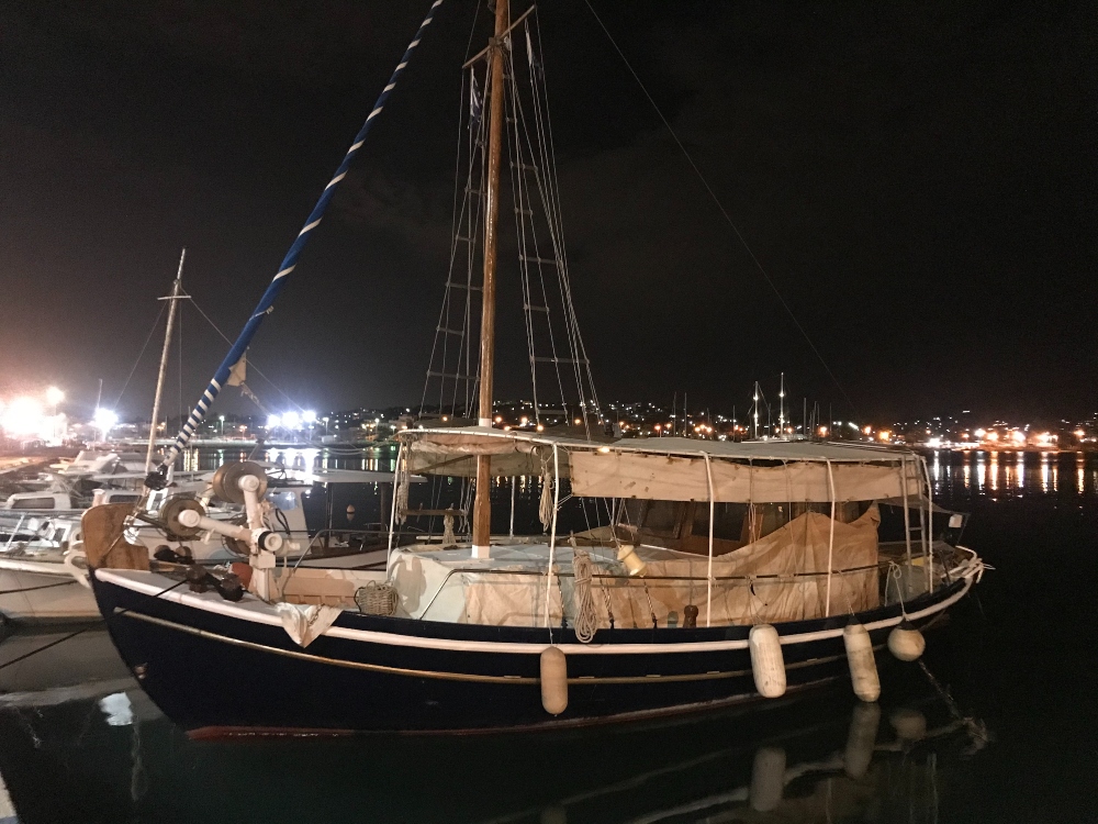 Τώρα οι κάβοι του μαδημένοι, η άγκυρα σκουριασμένη, μυρίζουν ακόμη ψαρίλα και πετρέλαιο, απομεινάρια της ιστορίας του. Χάσκουν τα φινιστρίνια, σφυρίζει ο βοριάς μες στο κουφάρι του ψαροκάικου.