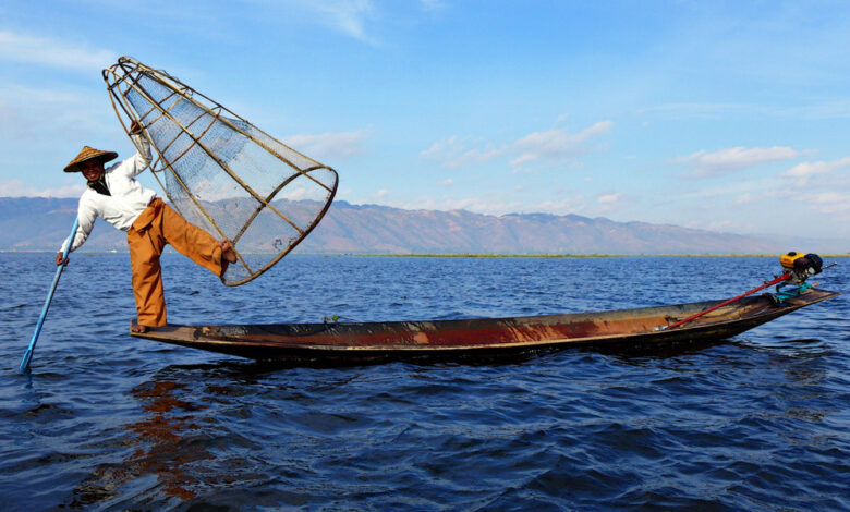 Όλες οι μετακινήσεις τους γίνονται κυρίως με κανό με κουπιά, αποφεύγοντας εκείνα με το μοτέρ που ρυπαίνουν τη λίμνη. Πολύ νωρίς το πρωί ή το σούρουπο, οι ψαράδες Ίνθα είναι οι κυρίαρχες φιγούρες στη λίμνη. Χρησιμοποιούν μια κωνική παγίδα και φημίζονται για τον ασυνήθιστο τρόπο που χειρίζονται το μονόξυλό τους. Στέκουν με το ένα πόδι πάνω στην πρύμνη της βάρκας και με το άλλο κουμαντάρουν το μακρύ κουπί προσπαθώντας ταυτόχρονα να αποφεύγουν τα χόρτα που επιπλέουν στην επιφάνεια της λίμνης. H μεγάλη κωνική ψαροπαγίδα, που ξεπερνάει τα δύο μέτρα (το μεγαλύτερο βάθος της λίμνης φθάνει τα τρία μέτρα) αποτελείται από ένα δίχτυ στερεωμένο σε δύο συρμάτινα στεφάνια, στο στόμιο της παγίδας. Όταν ο ψαράς εντοπίσει κάποια κίνηση ή φυσαλίδες στο νερό, ρίχνει την παγίδα και πιάνει το ψάρι ανάμεσα στα δύο στεφάνια.